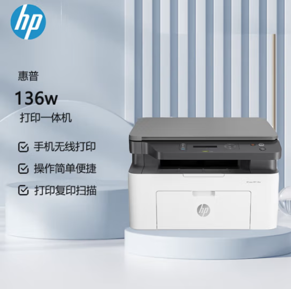 惠普(HP)136w 黑白激光多功能一體機(jī) A4黑白銳系列激光多功能一體機(jī) 無(wú)線打印 復(fù)印 掃描三合一 打印復(fù)印掃描 M1136升級(jí)款無(wú)線版